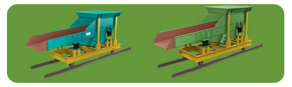 Vibratory Furnace Charger consists of a vibrating feeder mounted on a moving trolley with a storage hopper mounted above the feeder. The metallic components like scrap, bales, pig iron and foundry retains are stored in the hopper. The hopper shape is specially designed to enable bulky and irregular scrap pieces to be extracted without problem. The withdrawal of the scrap from the hopper is carried out by a specially built vibrating feeder. The feeder design is such that the materials conveyed are spread out into individual pieces as they flow toward the feeder discharge.